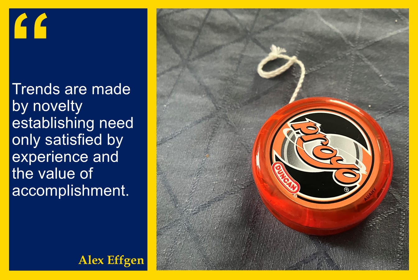 Of course they do. Because trends are made by novelty establishing need only satisfied by experience and the value of accomplishment. Credit my lonely childhood.