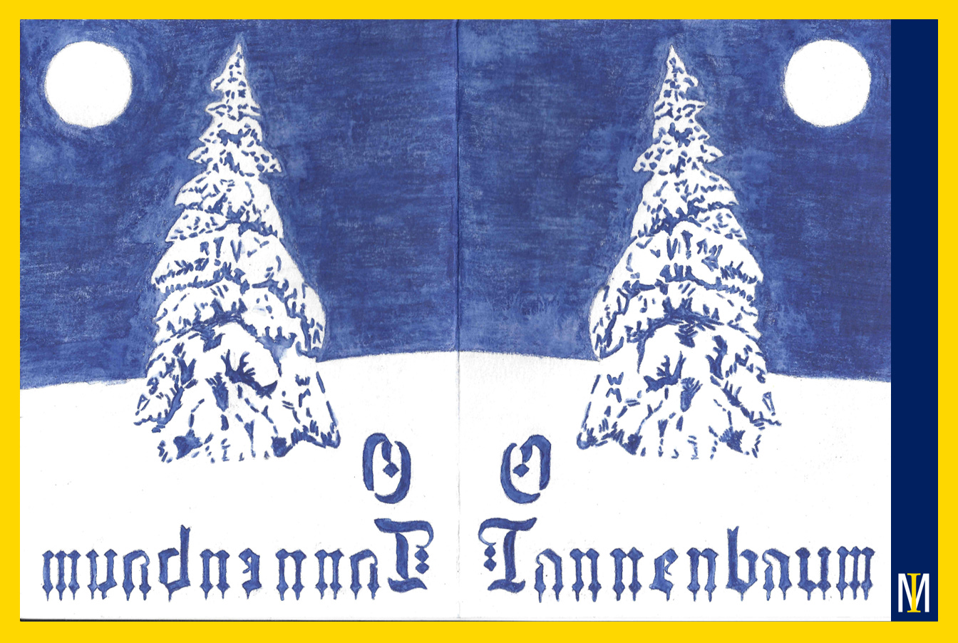 This past year (2025) I put my eye to the horizon and my foot on the throttle. They ran the contest. I saw the announcement after Thanksgiving, and spent time to reach my concept. I submitted the week before Christmas, and learned last week that I took second Honorable Mention! I was not sure how calligraphy in watercolor would turn out, and then reverse it by hand for the back of the card…but I did not sweat the details. You can judge for yourself.