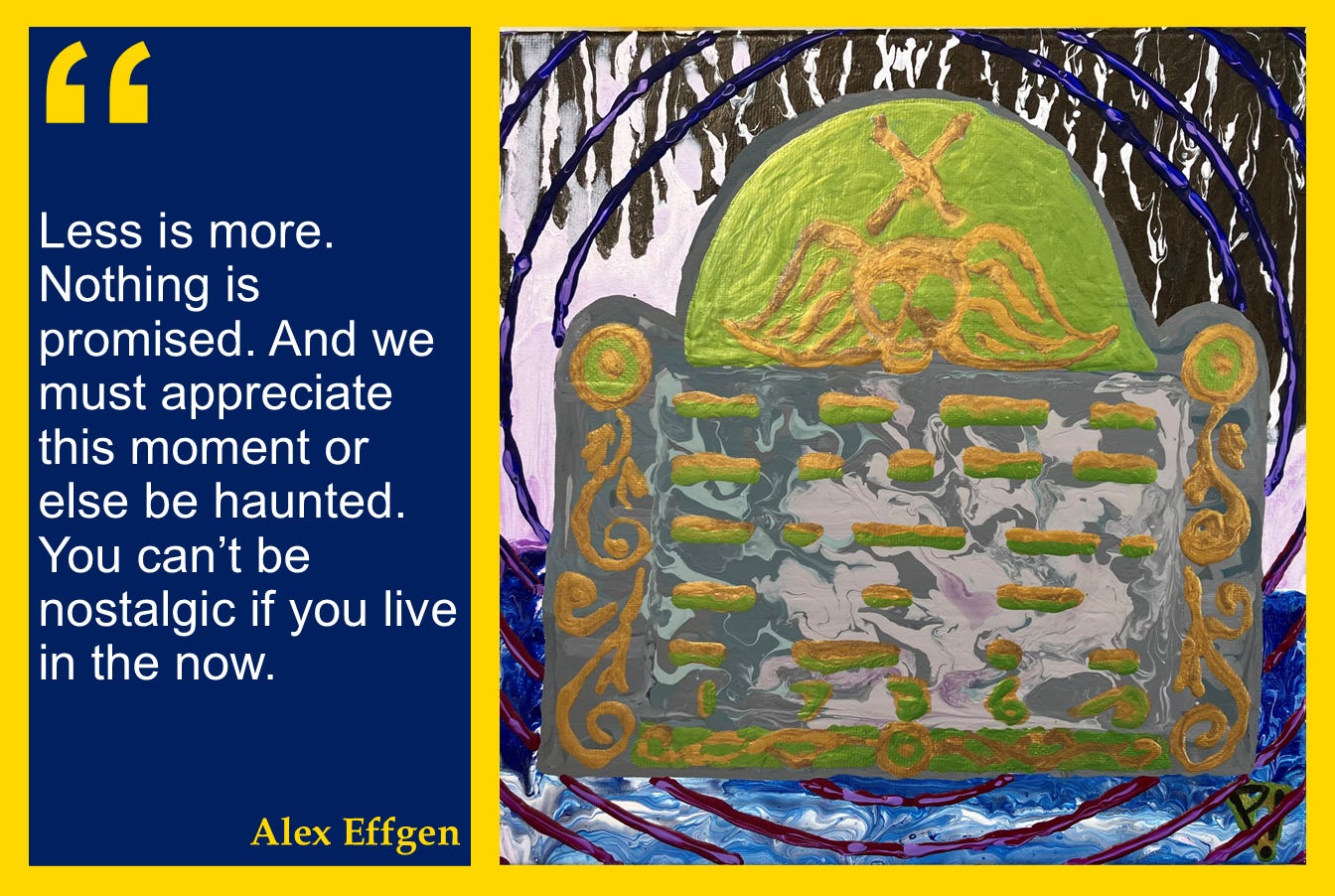 To my ear, Snider’s version gets it right. Less is more. Nothing is promised. And we must appreciate this moment or else be haunted. Todd Snider just passed a month ago. Another artist lost too soon, and a reminder to take this time with serious levity. You can’t be nostalgic if you live in the now.
